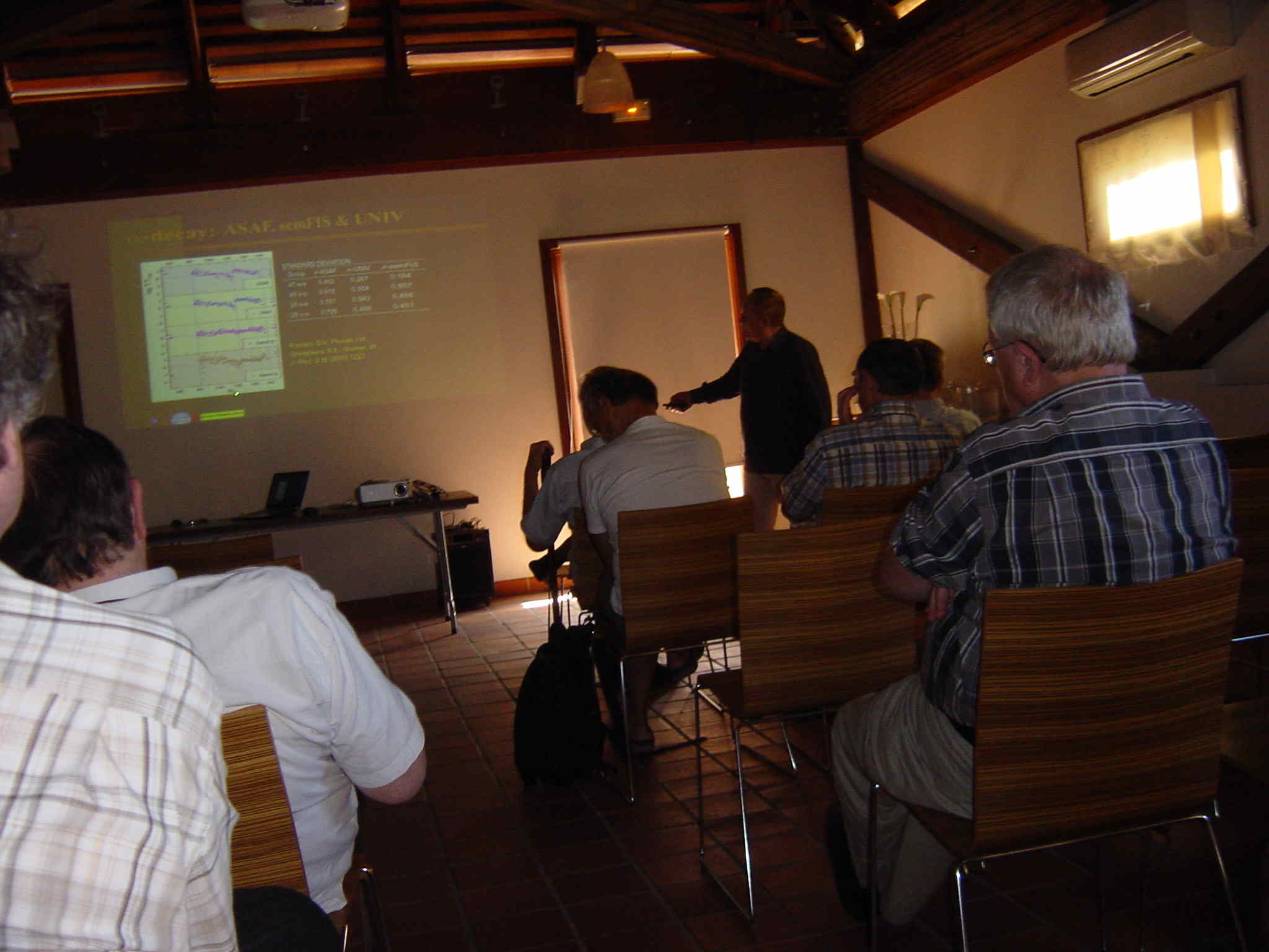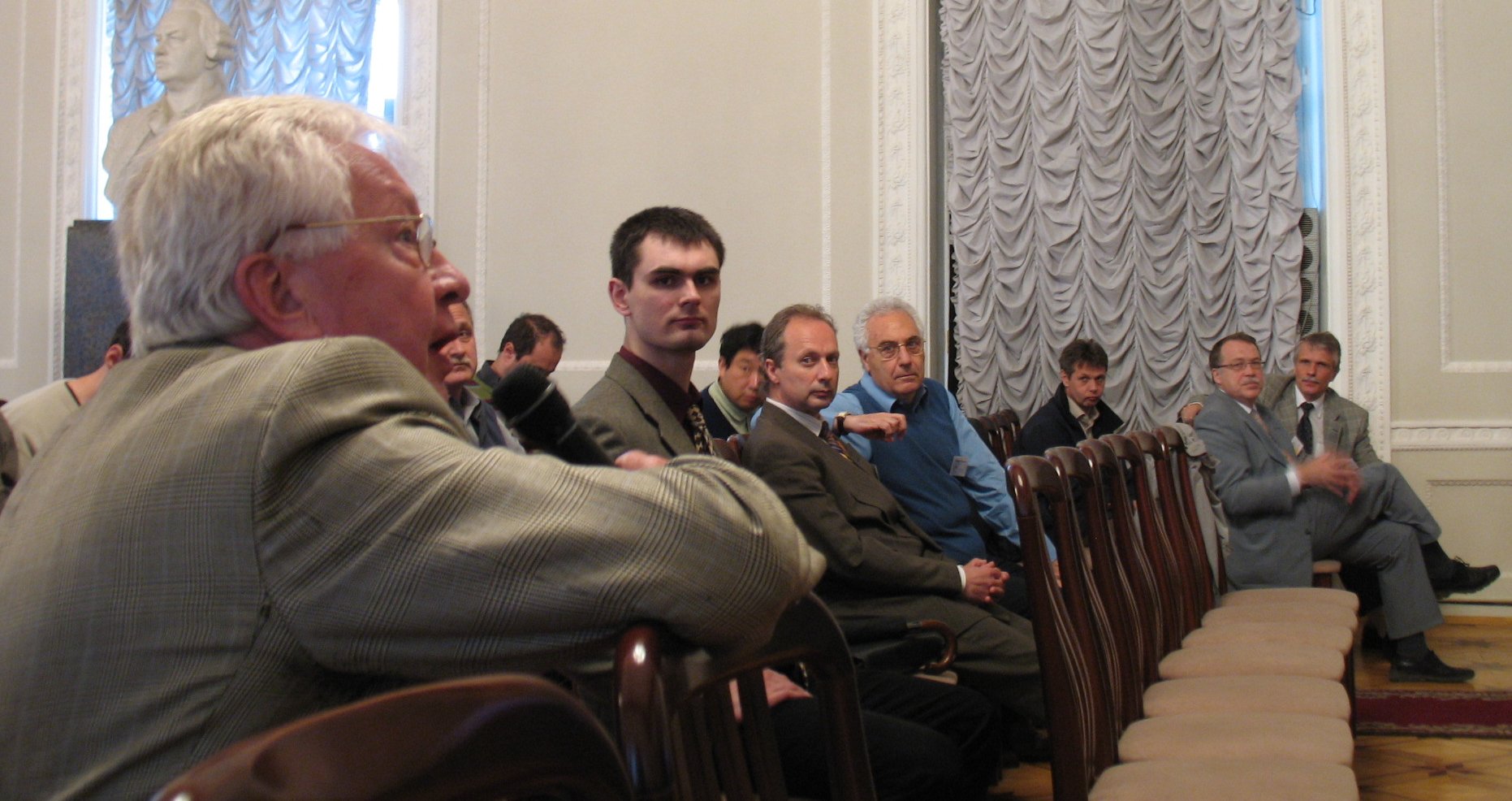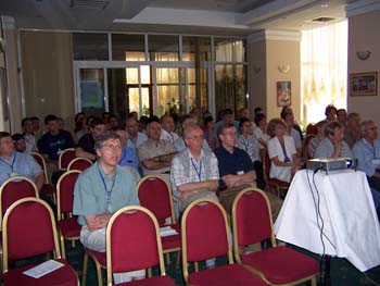 ISHIP2006 - International Symposion on Heavy Ion Physics - Gateway to the Unknown: Fundamentality-Complexity-Simplicity at FIAS, Frankfurt am Main, Germany, April 3-6, 2006. Photos: listening (D.N.P., V. I. Zagrebaev, L. P. Csernai, R. Stock, W. Greiner, Yu. Ts. Oganessian, A. Kostyuk, M. G. Itkis, M. I. Gorenstein) smiling .