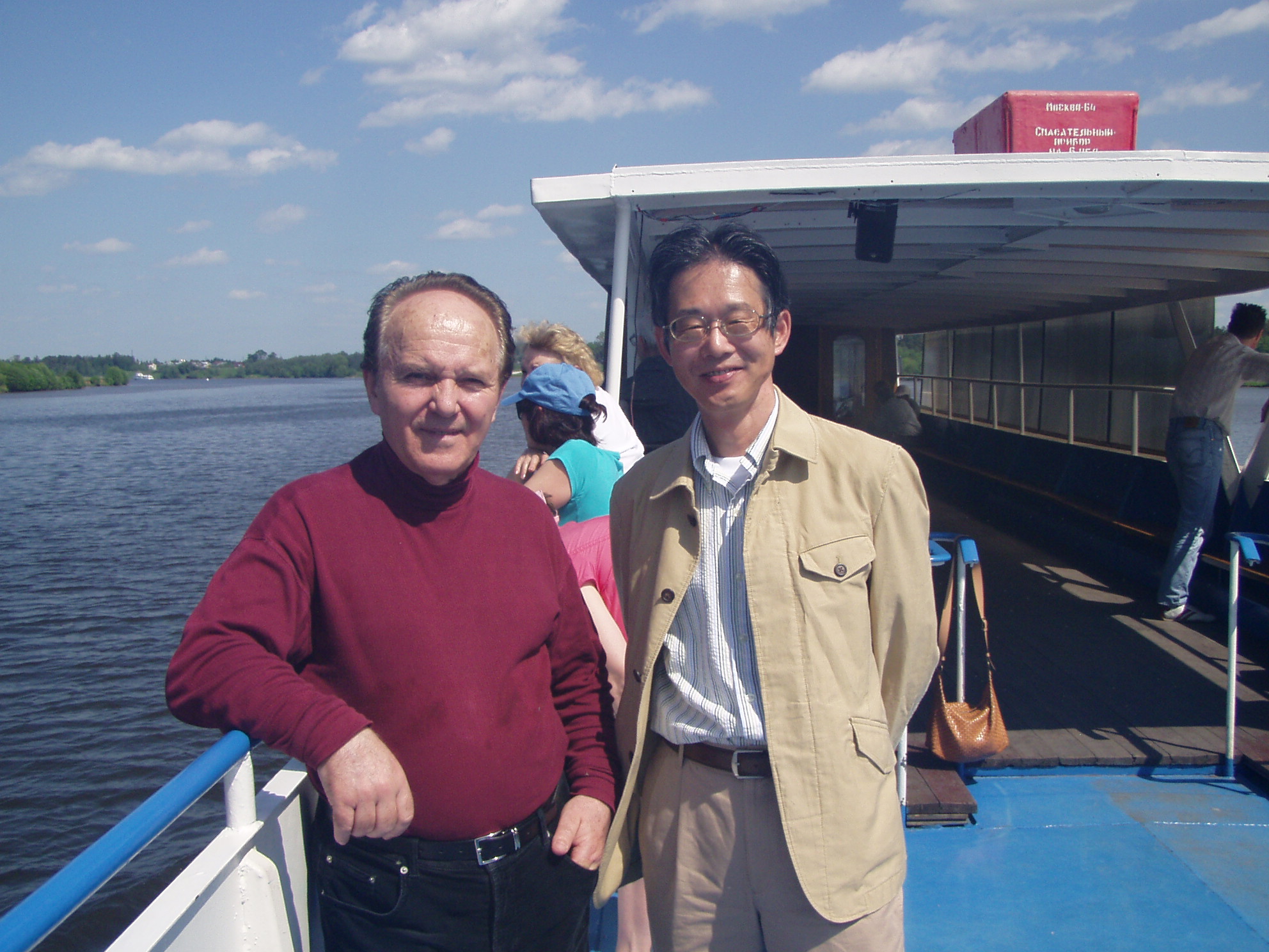 International Symposium dedicated to the 50th anniversary of FLNR, JINR Dubna, 24-27 May, 2007. Boat trip on Volga - with Y. Nagame, Boat trip on Volga - with M. Hussonnois, On the boat